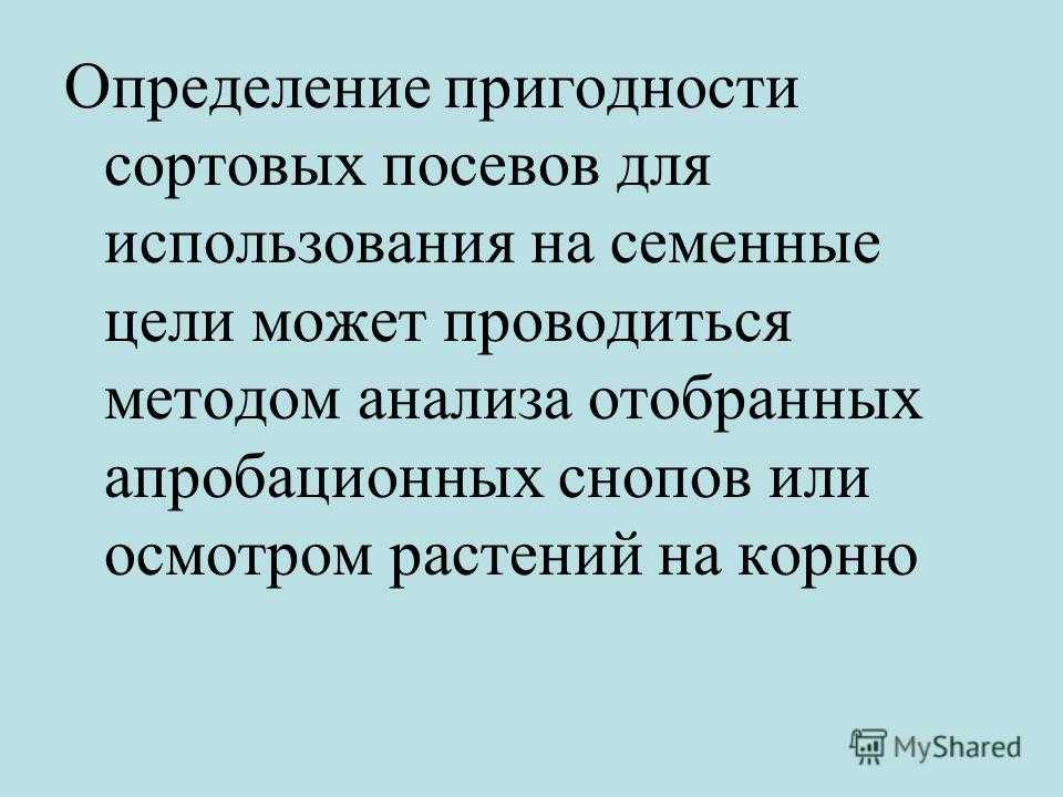 Определение пригодности сортовых посевов для использования на семенные цели может проводиться методом анализа отобранных апробационных снопов или осмотром растений на корню