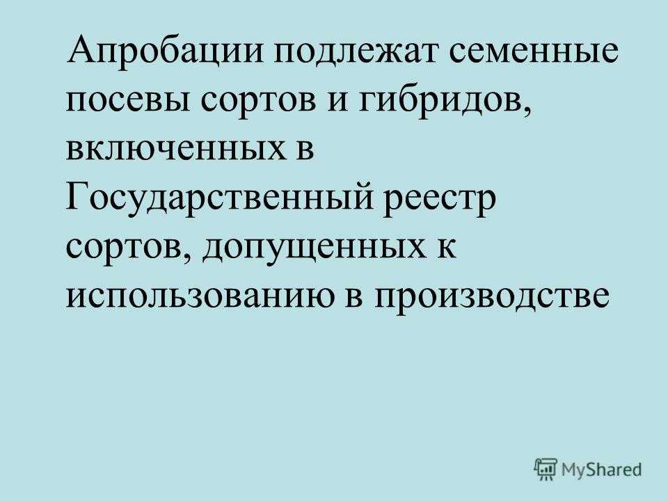 Апробации подлежат семенные посевы сортов и гибридов, включенных в Государственный реестр сортов, допущенных к использованию в производстве