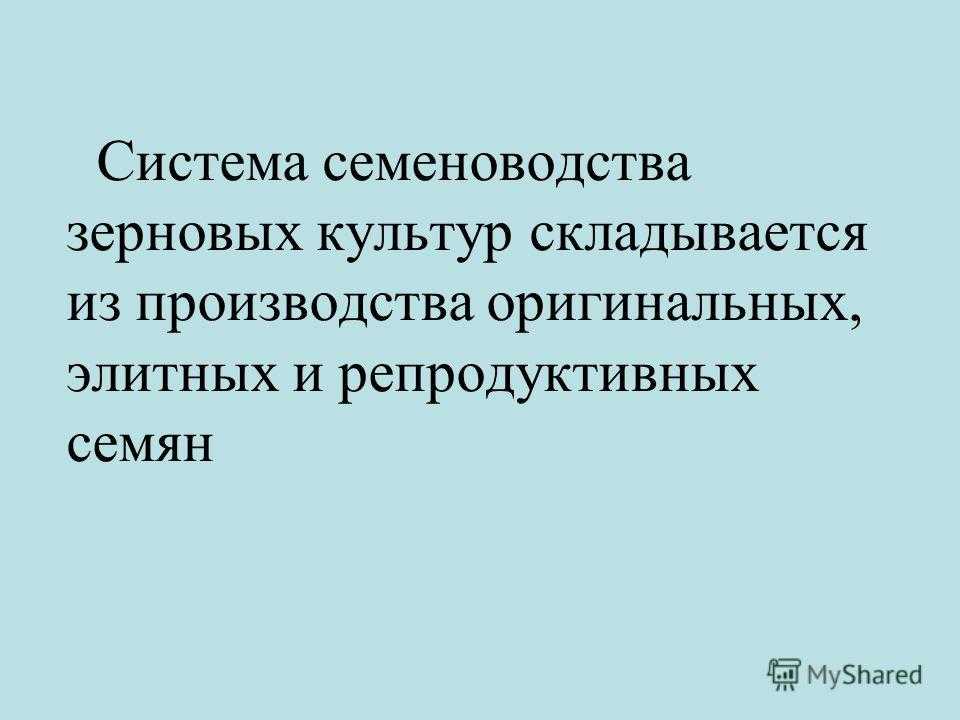 Система семеноводства зерновых культур складывается из производства оригинальных, элитных и репродуктивных семян