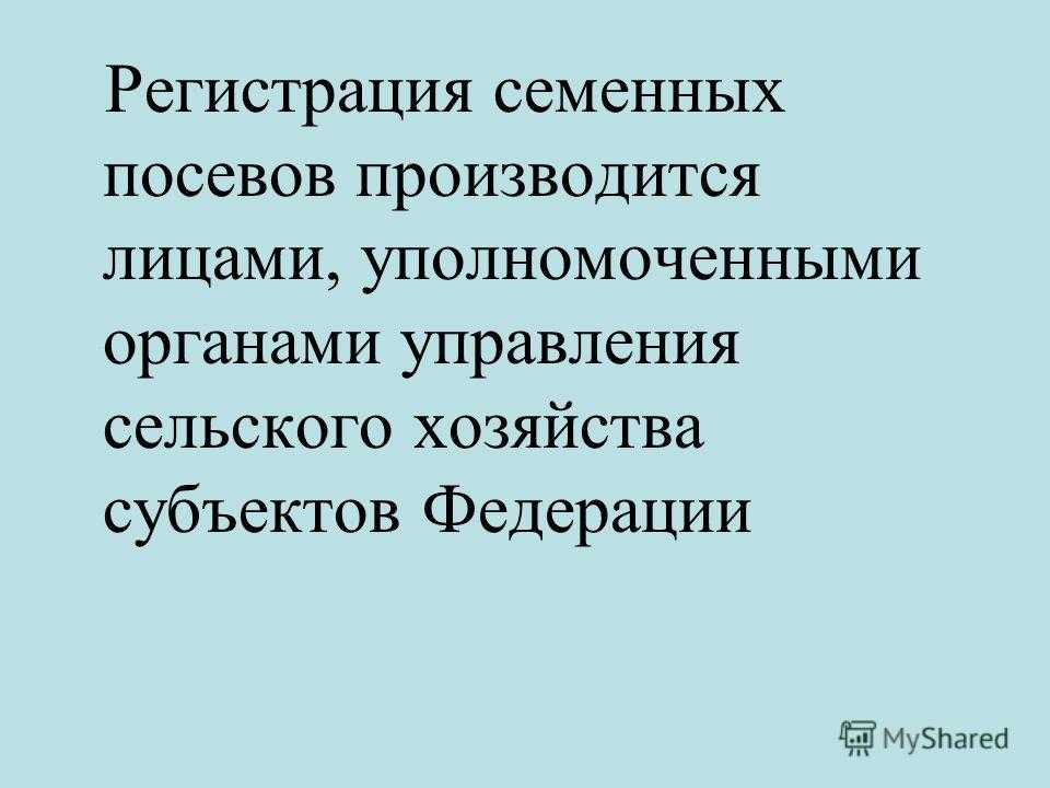 Регистрация семенных посевов производится лицами, уполномоченными органами управления сельского хозяйства субъектов Федерации
