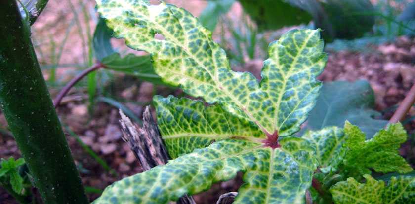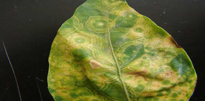 Болезни вирусного происхождения имеют характерные признаки, проявляющиеся в мозаичной окраске листьев, штриховатости вдоль жилок, морщинистости листовой пластинки, недоразвитости генеративных органов, общем пожелтении листьев.
