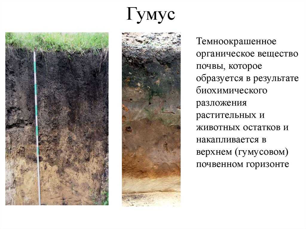Гумусовый слой почвы — представляет из себя плодородную землю, богатую питательными веществами, имеет характерный темный цвет гумуса. Любая плодородная почва содержит какой-то процент гумуса, но не будет являться гумусом в чистом виде.