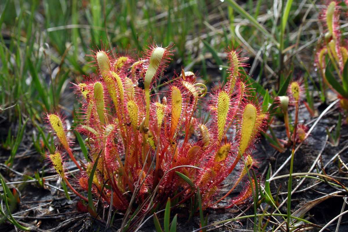 Красивый переливающийся куст высотой до полуметра — нитевидная росянка (Drosera filiformis) обладает очень узкими, тонкими, прямостоячими листьями, которые поблескивают и красиво мерцают благодаря капельному железистому опущению.