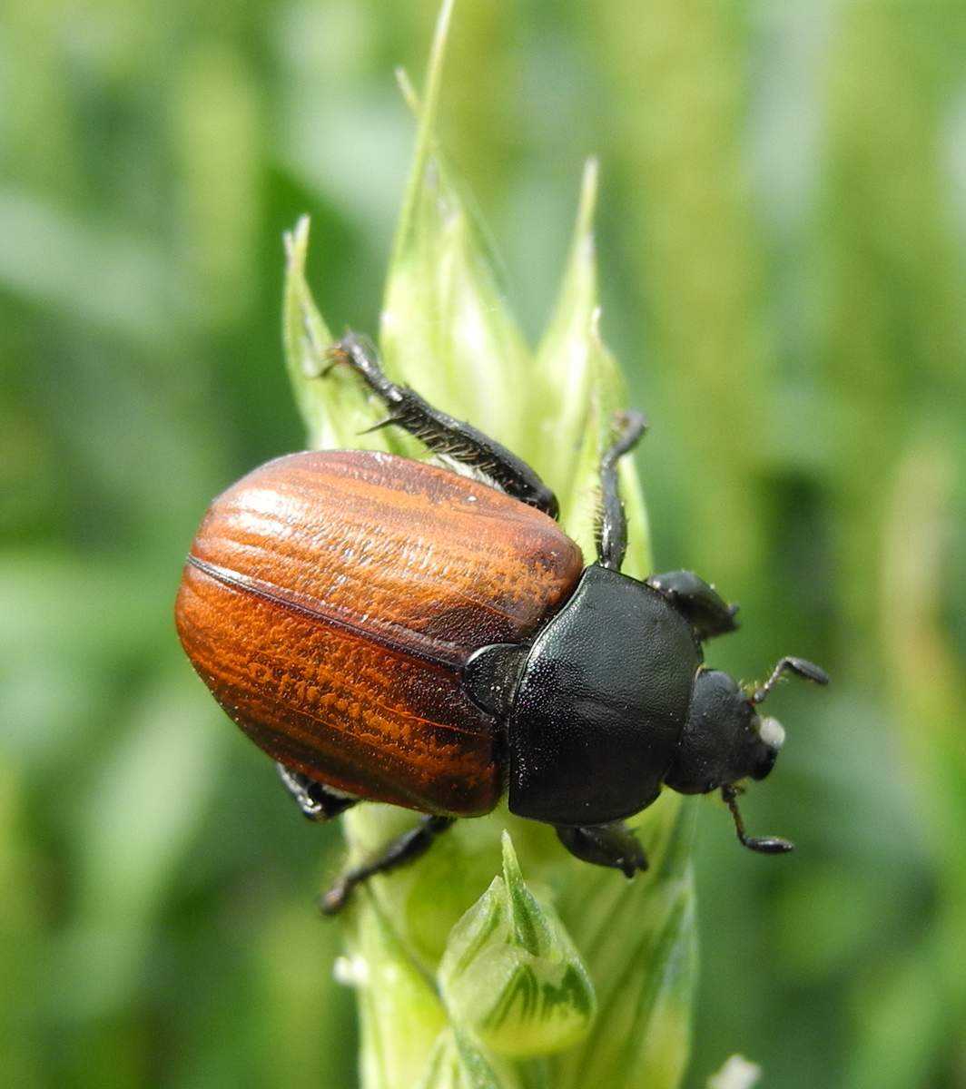 Хлебные жуки вредители появляются на посевах при наливе зерна – с конца мая (озимые культуры) до начала августа (яровые культуры). Так, первые хлебные жуки появляются на пырее, после чего они перелетают на озимые злаки, а по мере того как твердеют зерна, – переселяются на потом созревающие яровые злаки. Таким образом хлебные жуки вредители заселяют посевы зерновых колосовых и питаются зерном в фазах молочной и восковой спелости. Вредители подвижные в горячие солнечные часы дня, когда летают в поисках корма, сидят на колосьях и питаются. Вечером значительная часть их спускается вниз и скрывается под комками или в щелях и трещинах почвы. Самцы хлебного жука живут от 16 до 24 суток, самки – 21-35. Яйца самки хлебного жука вредителя начинают откладывать через 10-12 суток после появления, размещая их небольшими кучками во влажном слое почвы на глубине 8-20 см. Каждая самка хлебного жука вредителя может отложить до 30-40 яиц в два-три приема. Чаще всего они откладывают яйца на яровой пшеницы (в северных районах), а также на парах и пропашных культурах. Следует помнить, что через 7-10 суток после возрождения до 80% самок становятся половозрелыми, оплодотворяются и мигрируют в почву для откладывания яиц