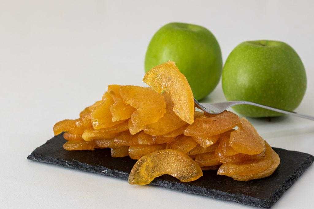 Цукаты из яблок подвергаются минимальной термической обработке и поэтому, сохраняют все ценные свойства яблок. Цукаты из яблок можно подавать как отдельное лакомство, а также использовать в качестве начинка для тортов, пирогов, блинов, запеканок и других блюд. источник