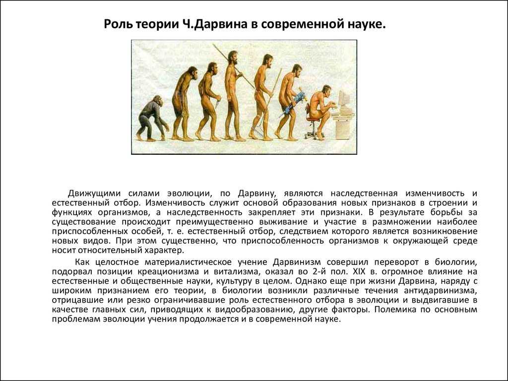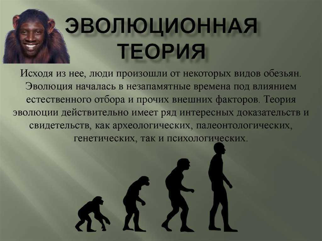 Эволюционная теория Дарвина помогла ученым понять, что человек произошел от общего предка с другими животными. Она также показала, что человек прошел серию изменений в своей эволюции. Эволюционная теория помогла ученым понять, как и почему происходили эти изменения и как они могли создать такие виды, как человек.