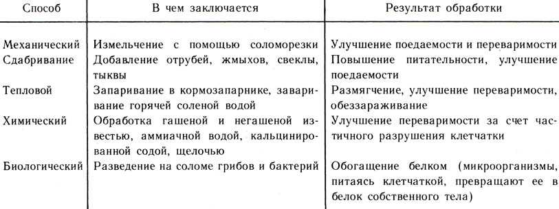 Чаще всего предварительной обработке подвергают грубые корма, особенно солому (табл. 48).