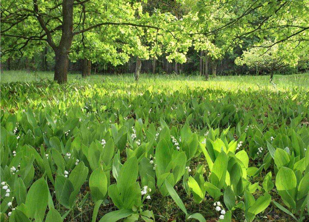 Прекрасно можно сочетать посадки ландыша с другими цветами или кустарниками. Красивый участок получится, если растения высадить среди плодовых или декоративных деревьев.