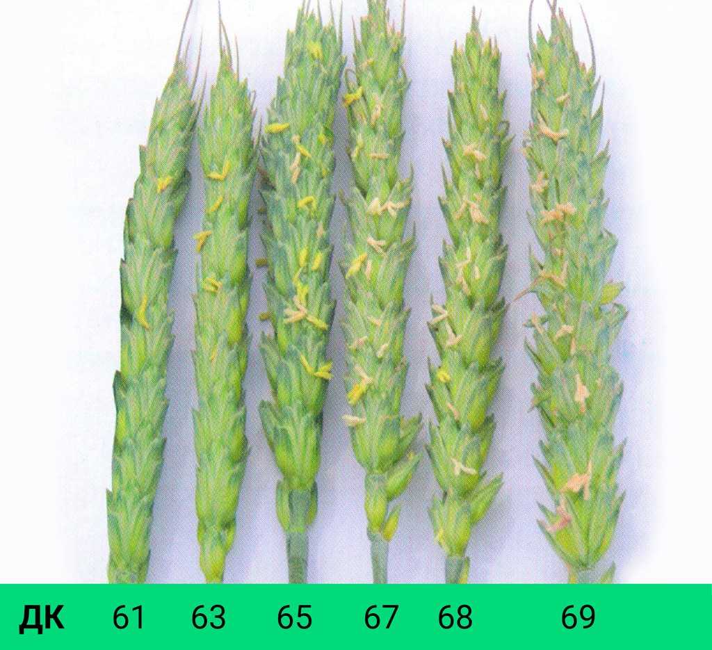Цветение отмечается при появлении первых пыльников. К середине фазы созревает 50% тычинок. Цветение протекает наиболее благоприятно при температуре воздуха +14…+19°С и хорошей влагообеспеченности. Перегревы и суховеи в этот период снижают озерненность колоса.