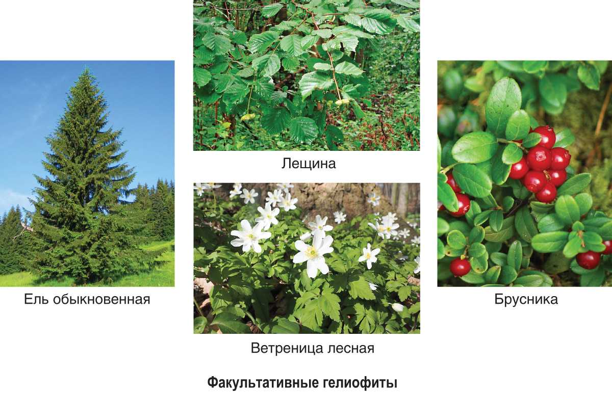 Факультативные гелиофитыв зависимости от степени теневыносливости имеют приспособительные особенности, сближающие их то с гелиофитами, то со сциофитами.