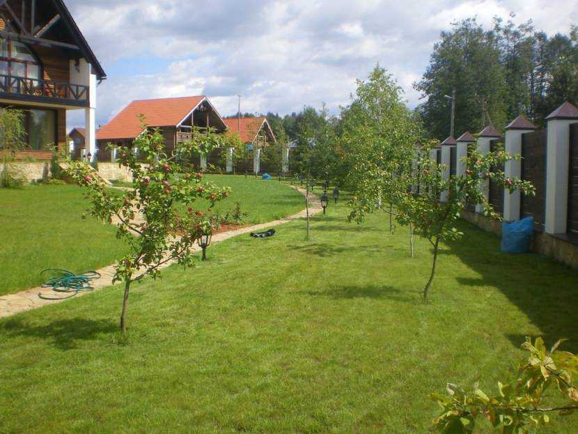 - Посадочные места намечаем, соблюдая отступы от границ участка и рекомендуемые расстояния между конкретными деревьями и кустарниками.