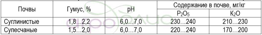 Таблица — Оптимальные агрохимические показатели почв для возделывания люцерны.