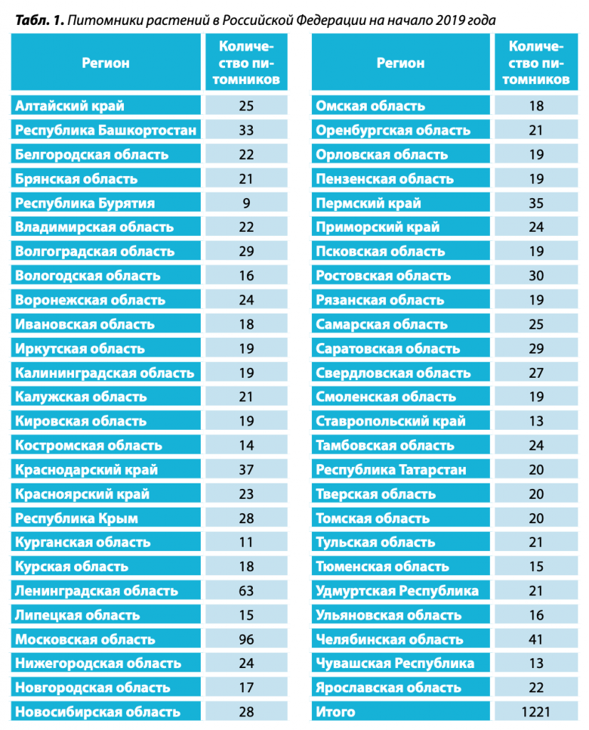 По мнению многих экспертов, Российской Федерации, обладающей огромной территорией, многообразием природно-климатических условий и большой численностью населения, необходимо иметь около 10 тыс. питомников. Сейчас для их формирования сложилась благоприятная обстановка, поскольку существует один из самых важных факторов — спрос на продукцию. По оценкам специалистов, ежегодно отмечается повышение ее объемов на 20% и больше. Данный факт позволяет надеяться, что весь посадочный материал, который будет выращиваться во вновь создаваемых хозяйствах, найдет своего потребителя.