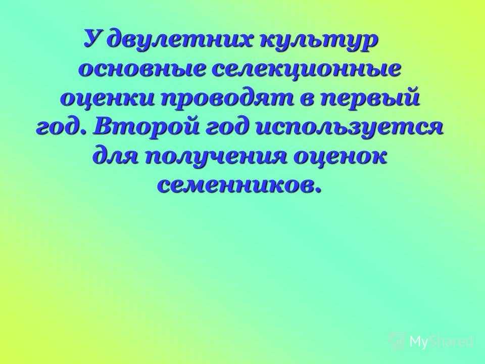У двулетних культур основные селекционные оценки проводят в первый год. Второй год используется для получения оценок семенников.